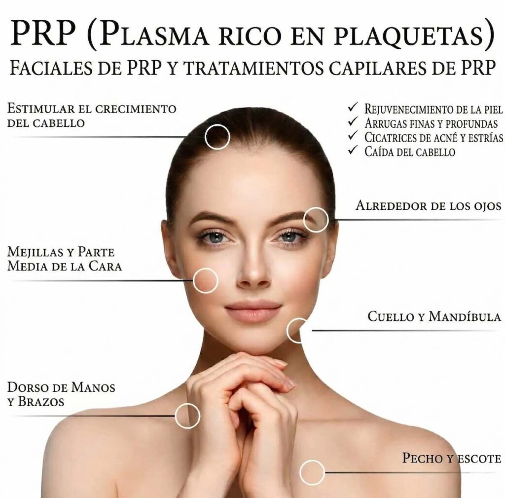 El PRP facial consiste en extraer una pequeña muestra de sangre, procesarla para concentrar las plaquetas y aplicar ese plasma en la piel. Las plaquetas liberan factores de crecimiento que pueden favorecer la regeneración cutánea, mejorar la textura y apoyar la síntesis de colágeno y elastina con el paso de las semanas.